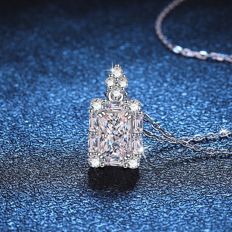 1 Carat Moissanite Sugar Cube Pendant Emerald Cut Radiant Necklace