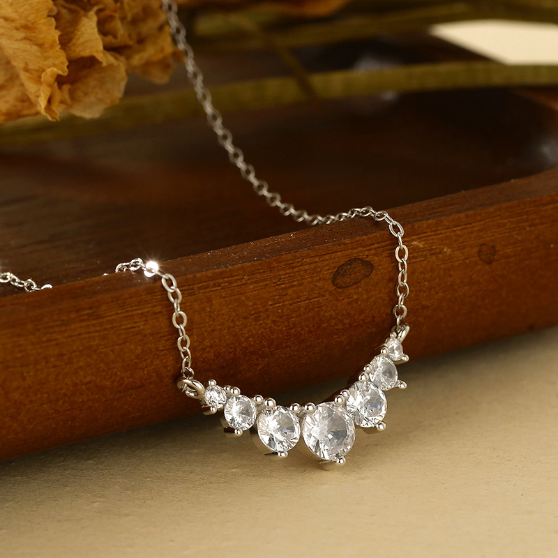 European and American Style S925 Sterling Silver Small Diamond Smile Necklace Clavicle Chain Gift