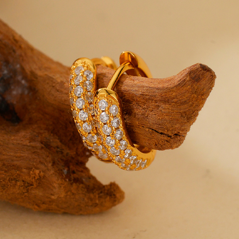 S925 Sterling Silver Diamond Ring Ear Clip Earrings Gift
