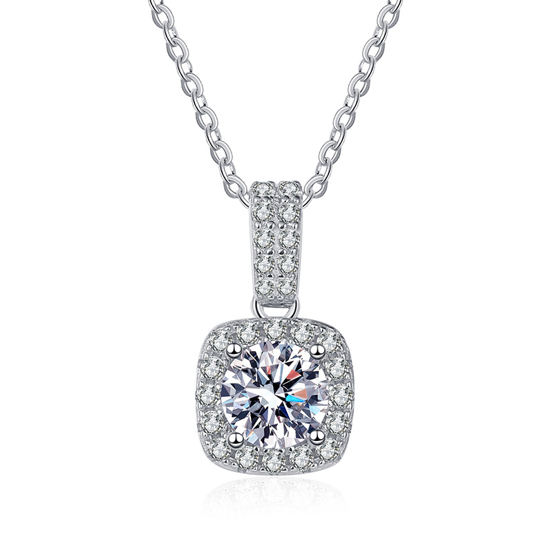 S925 Sterling Silver Square 1 karat D Color Mosan Diamond Necklace