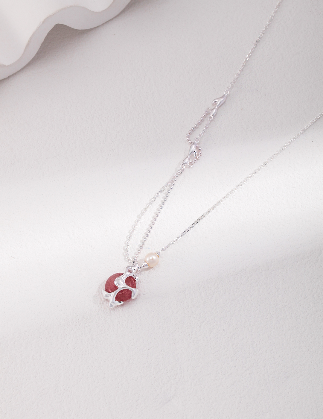 Material: S925 silver/natural strawberry crystal peace buckle/natural pearl
